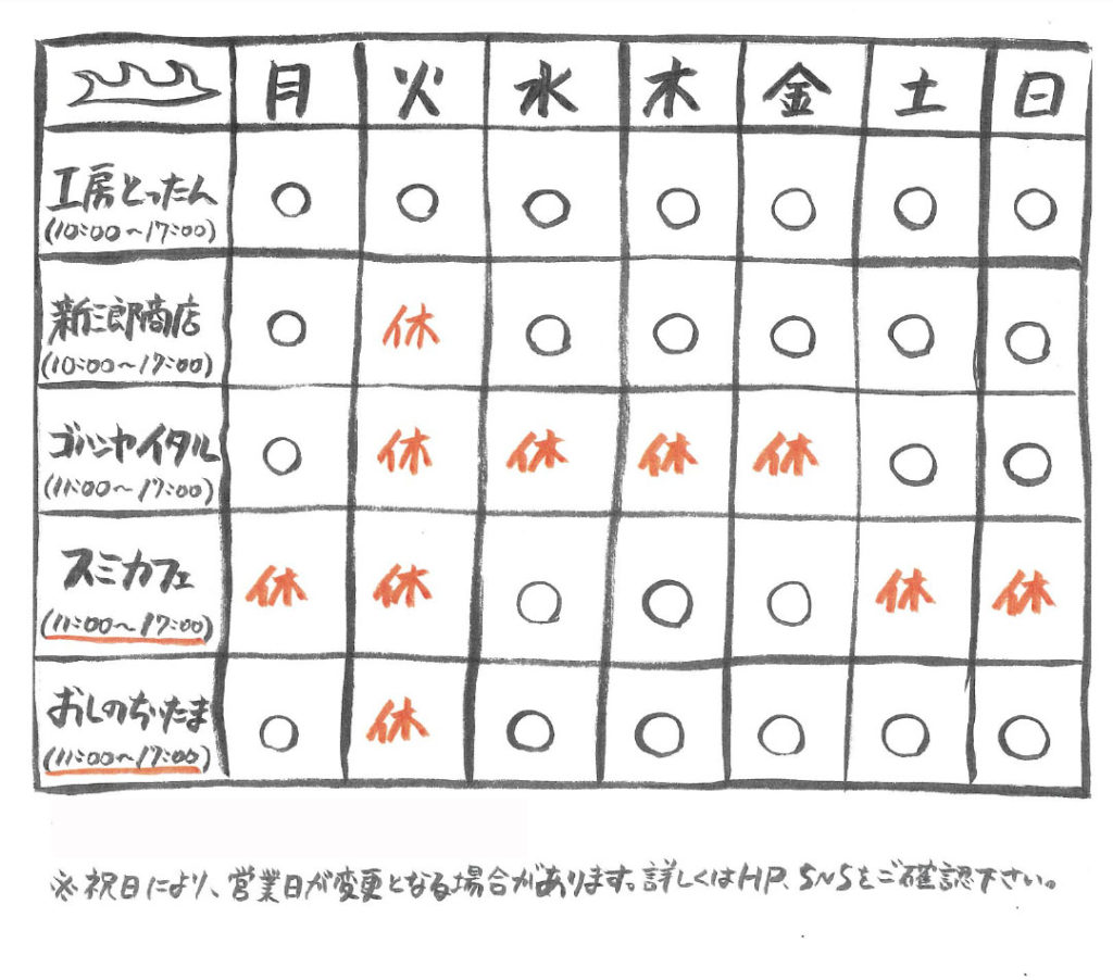 工房とったん 新三郎商店 ゴハンヤイタル sumi cafe おしのちいたま 2024年2月25日いつも、工房とったん、新三郎商店、ゴハンヤ イタル、sumi cafe、おしのちいたまをご利用いただきまして誠にありがとうございます。