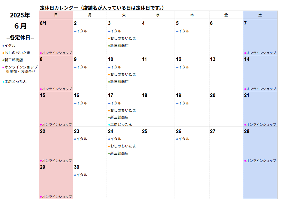 6月の営業日のご案内
